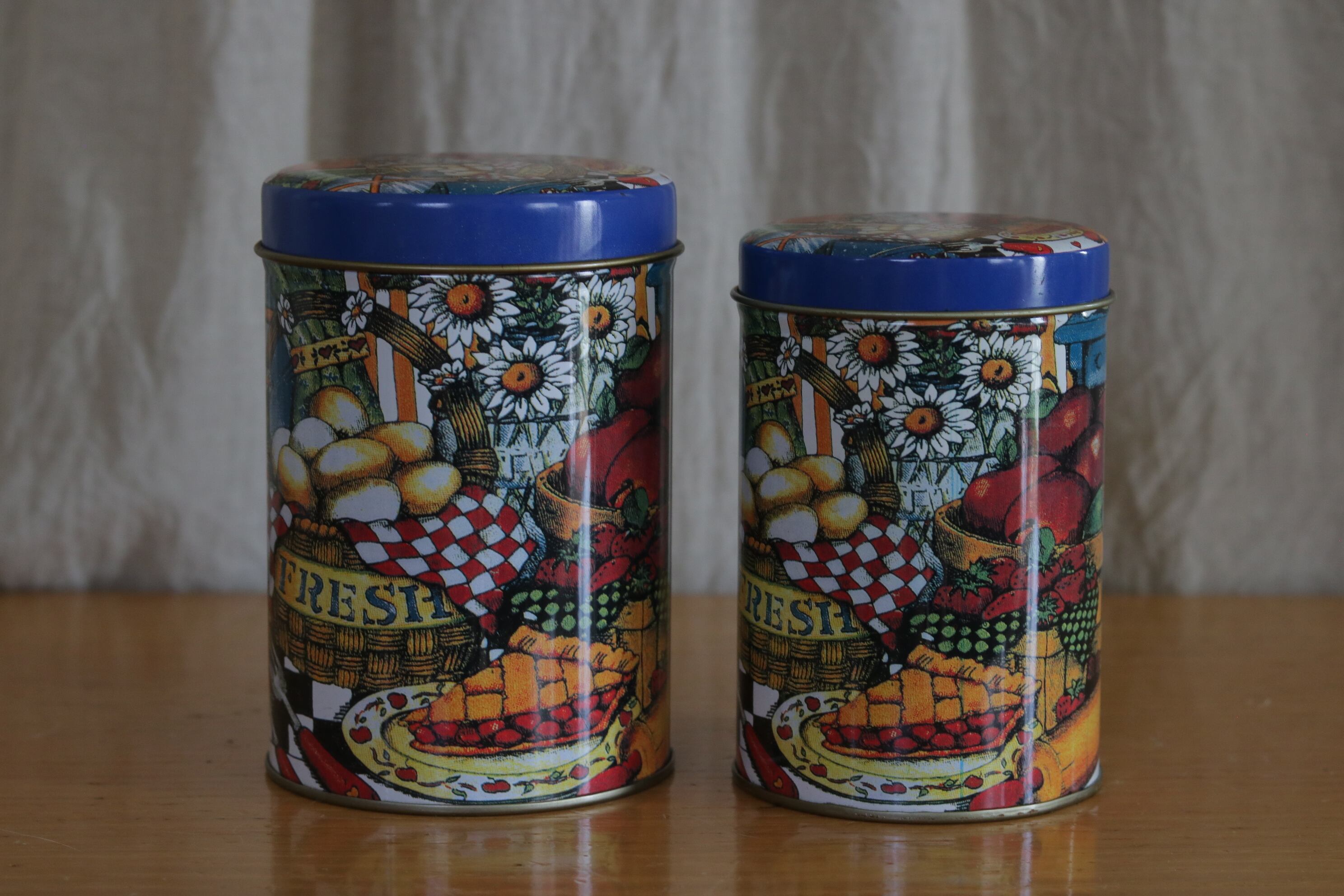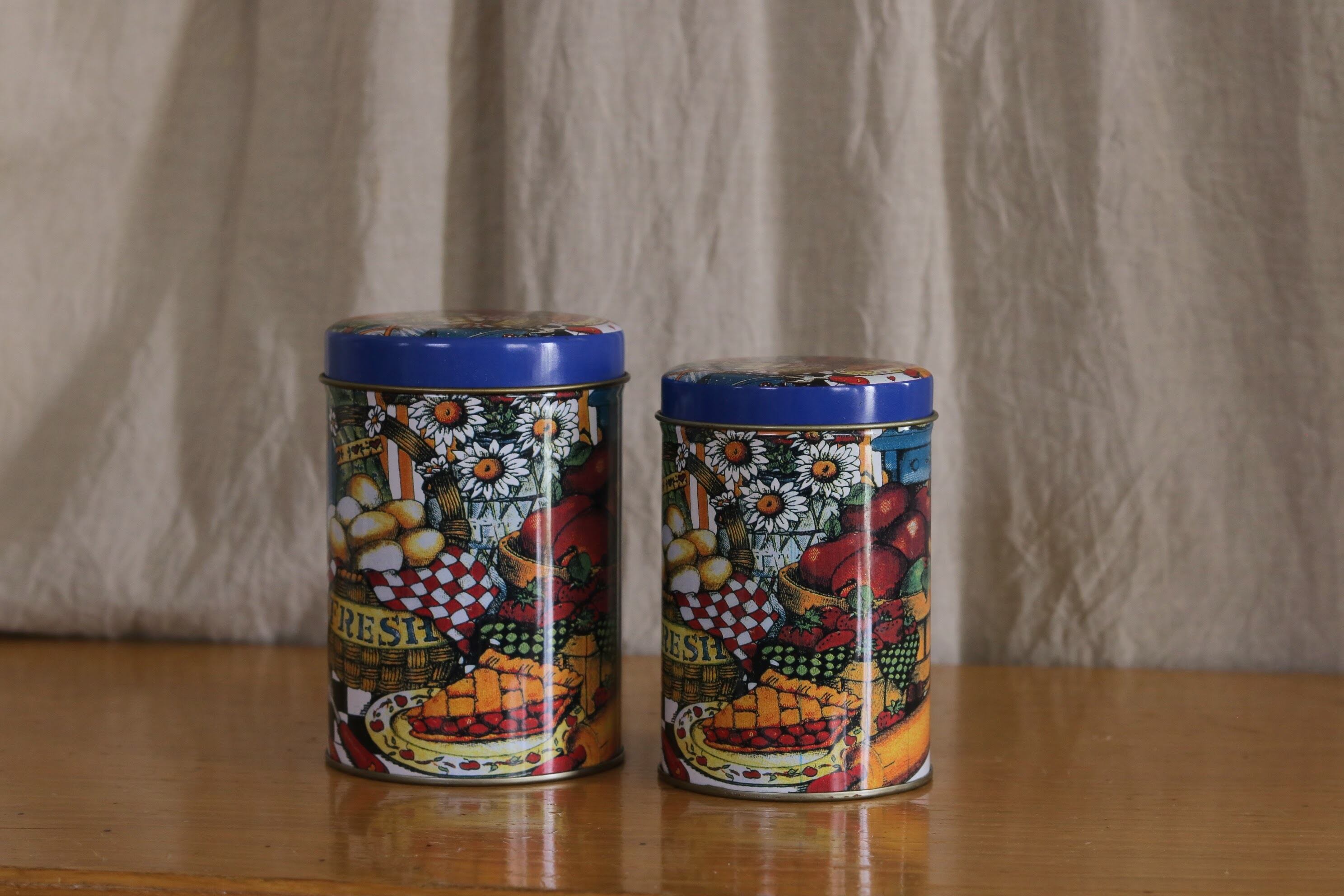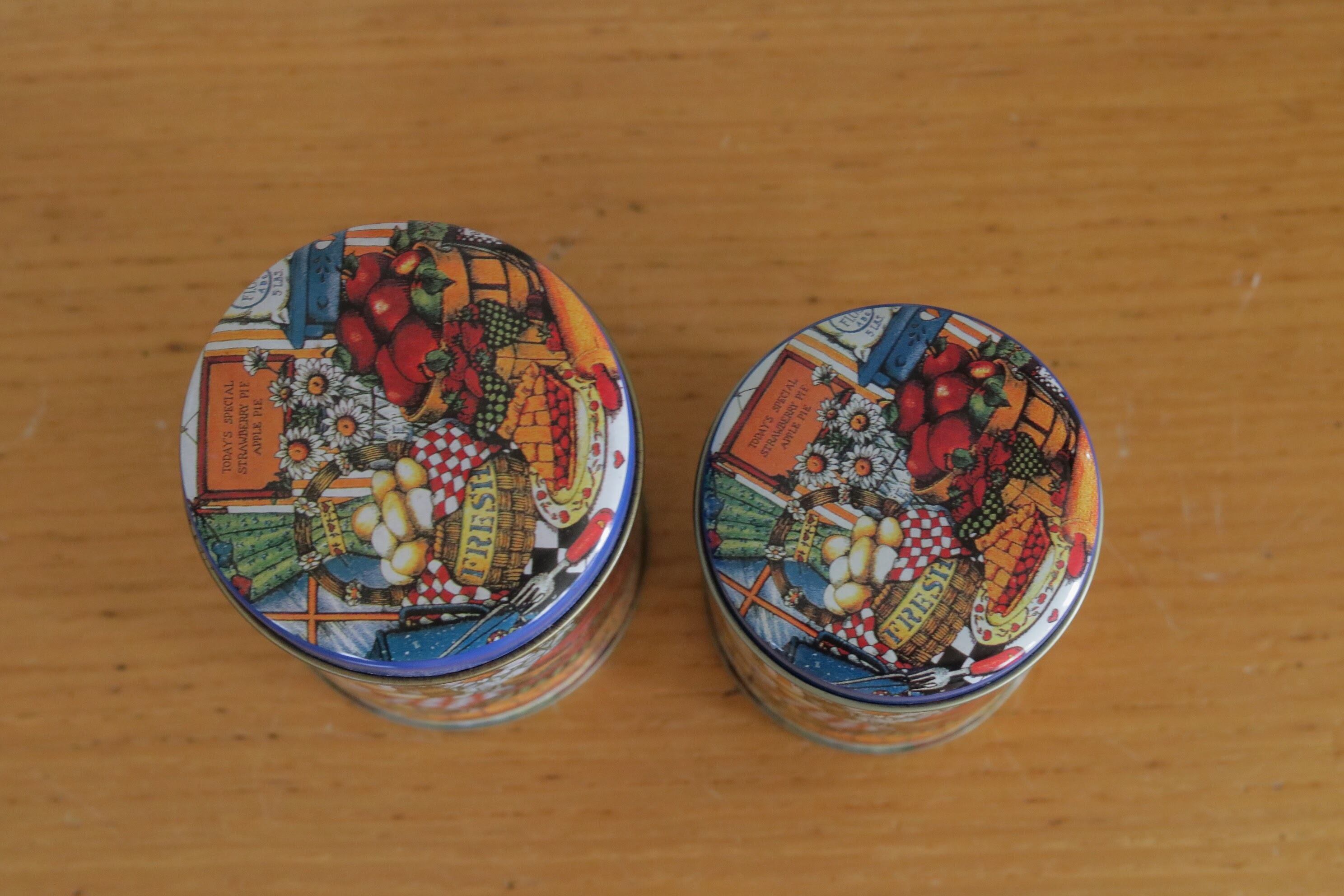 カントリー調な絵柄が可愛らしいステンレス製の缶2個のセットです。