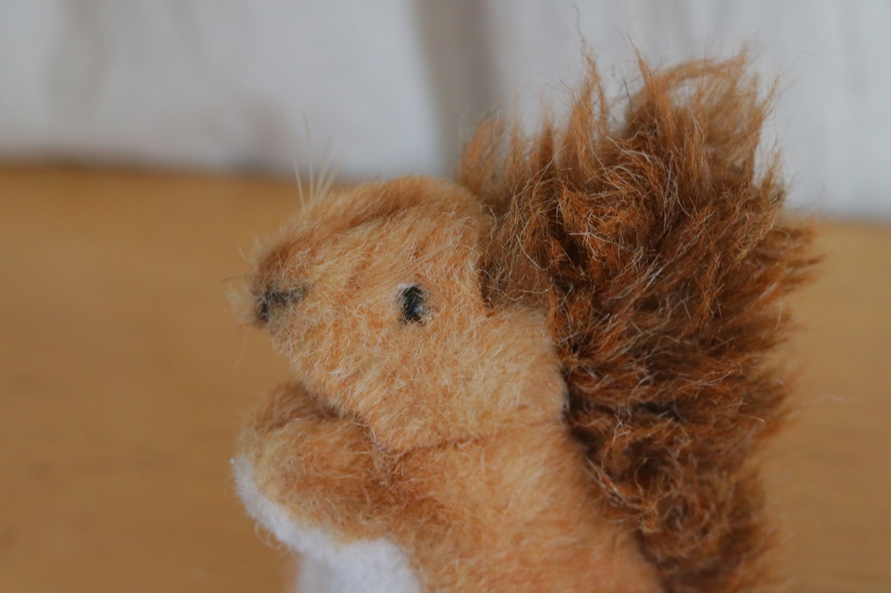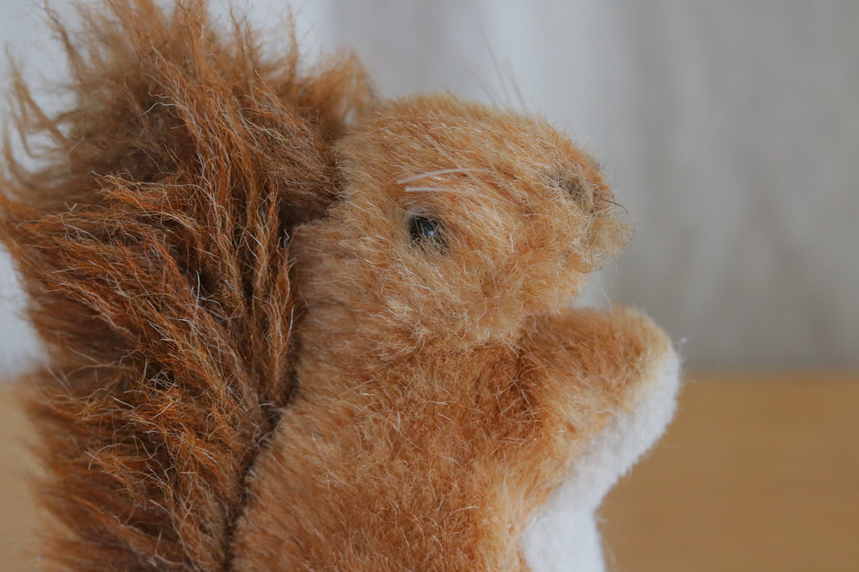 ふわふわしっぽのリスのぬいぐるみです。どの角度から見てもキュートな存在感です。